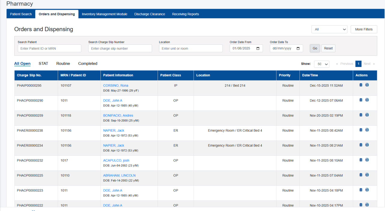 An integrated module that manages medication dispensing, inventory, and billing ensuring accurate prescriptions, real time stock visibility, and safe, efficient pharmacy operations.